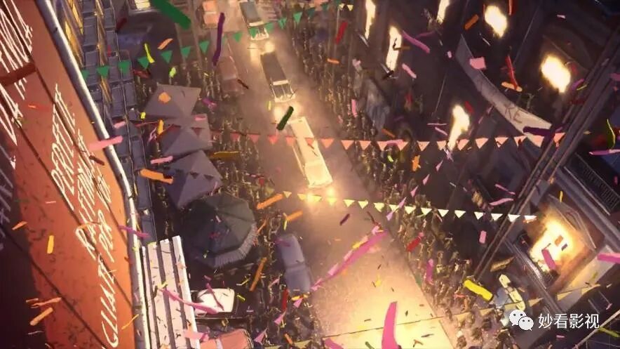 影片的水彩画风则比较贴切,能够恰到好处地表现出反乌托邦的感觉,不同阶层的环境完全不同,到处充斥着堕落的气息,烟尘不断从高处飘落到下层,很符合黑色故事的调调。