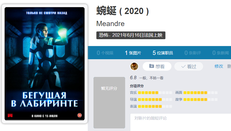片名Meander (2020)。