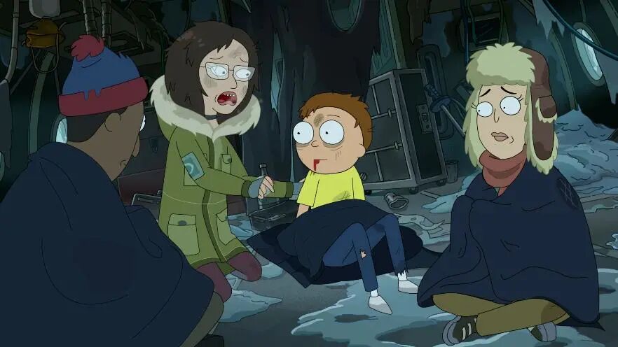 其中一位坠机幸存者戴着一顶帽子,造型就行《South Park》的斯坦一样。