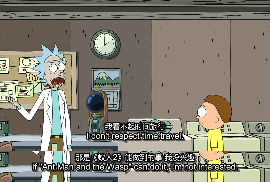 里克说:“我看不起时间旅行,那是《蚁人2》能做到的事,我没兴趣。”(I don't respect time travel. If Ant-Man and the Wasp can do it, I'm not Interested)