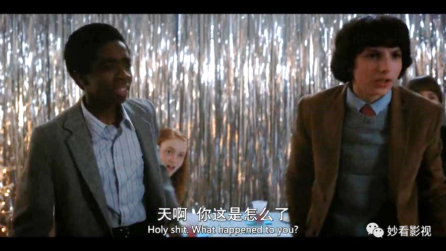 27.达斯汀进入冬日舞会时,迈克对他说:“天哪,你怎么了?”(Holy shit, what happened to you?)