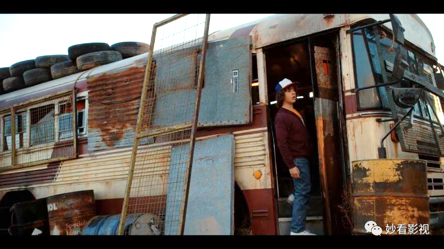 19.史蒂夫、达斯汀和迈克丝在垃圾场设计陷阱时,使用钢网铁板加固公共汽车。