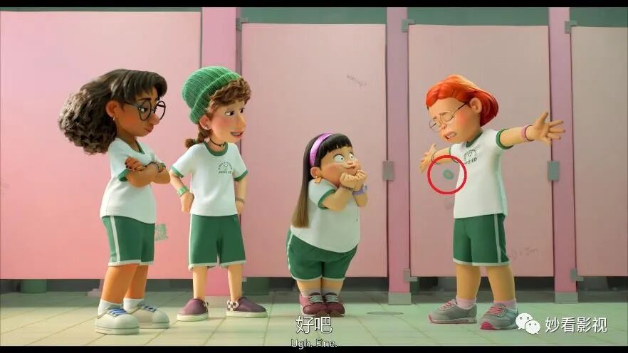 16.小美学校的厕所隔间上贴着小丑鱼贴纸,指的是《海底总动员》(Finding Nemo ,2003)。