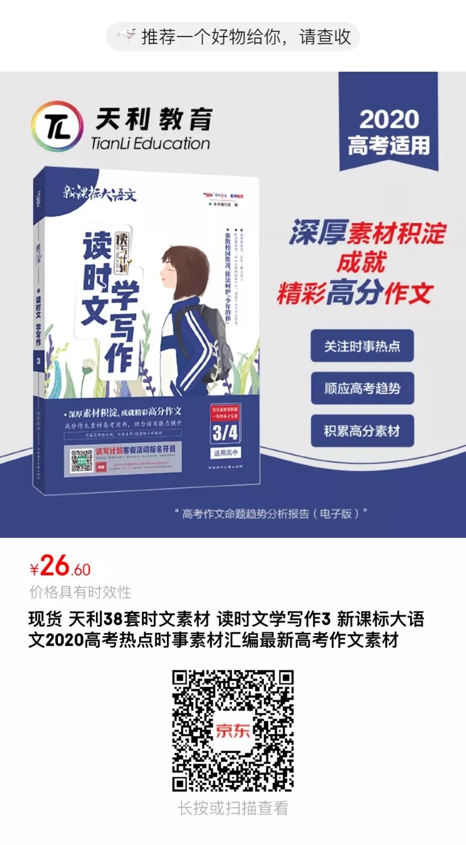 关注时事热点+顺应高考趋势+积累高分素材,深厚素材积淀,成就精彩高分作文!时文选粹还有更多精彩内容收录在新书里~