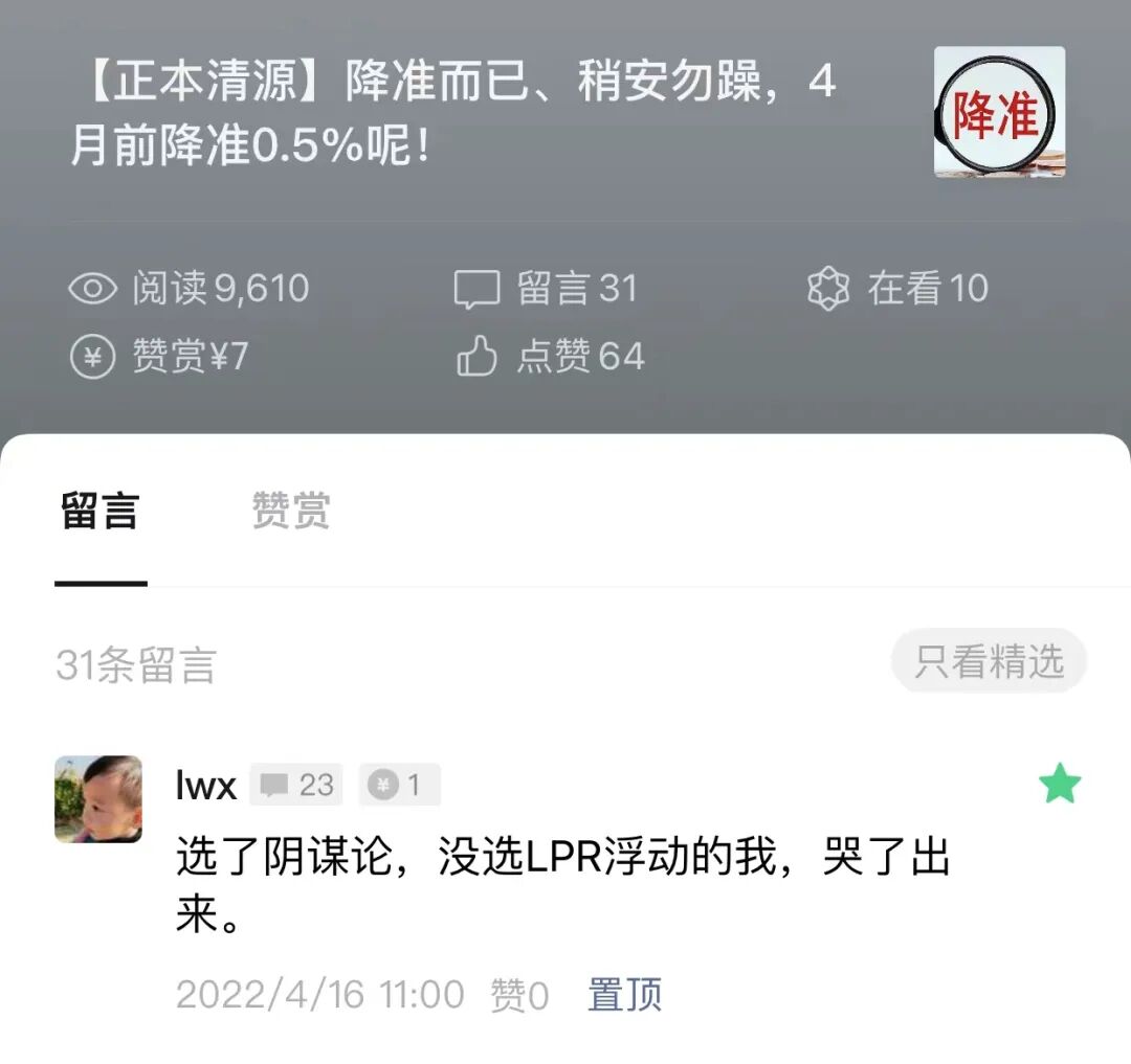 当初不听我的劝、不换浮动利率(lpr)的,现在可能后悔了吧。为什么有的人宁愿选择信阴谋论、降智口嗨内容,也不愿意信我有理有据、逻辑完备的系统性分析?!希望国家再给大家机会换浮动利率(LPR)的时候,大家别再迟疑了。而且,我认为国家肯定会给机会。3、关注并信任我的朋友,您就相当于已经赚了一辆好车、甚至一套房,或者说中了一次双色球头奖!下面分享几个五湖四海朋友最近分享给我的案例。最近一年多时间我收到的五湖四海房价下跌案例非常多,而且越来越多,和18-19年被追着骂完全不同了,这个感觉真的很棒!