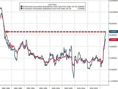 主要是4月29日周五,美国商务部数据显示,美国3月PCE物价指数同比上涨6.6%,略低于预期值6.7%,前值为6.4%,续刷1982年以来的最高水平,为美联储2%目标的3倍多。