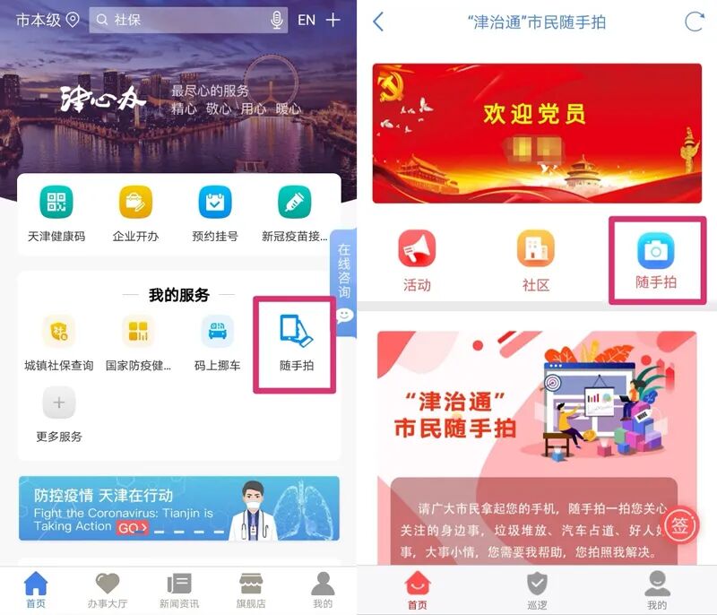 没错,这也是通过“城市大脑”完成的——在“城市大脑”中,接入“两津联动”平台,即建立“津心办”和“津治通”两个平台的交互联通。海量数据打通共享、跨部门跨区域协同联动。共建共治共享“我的城”,随手一拍就能实现。