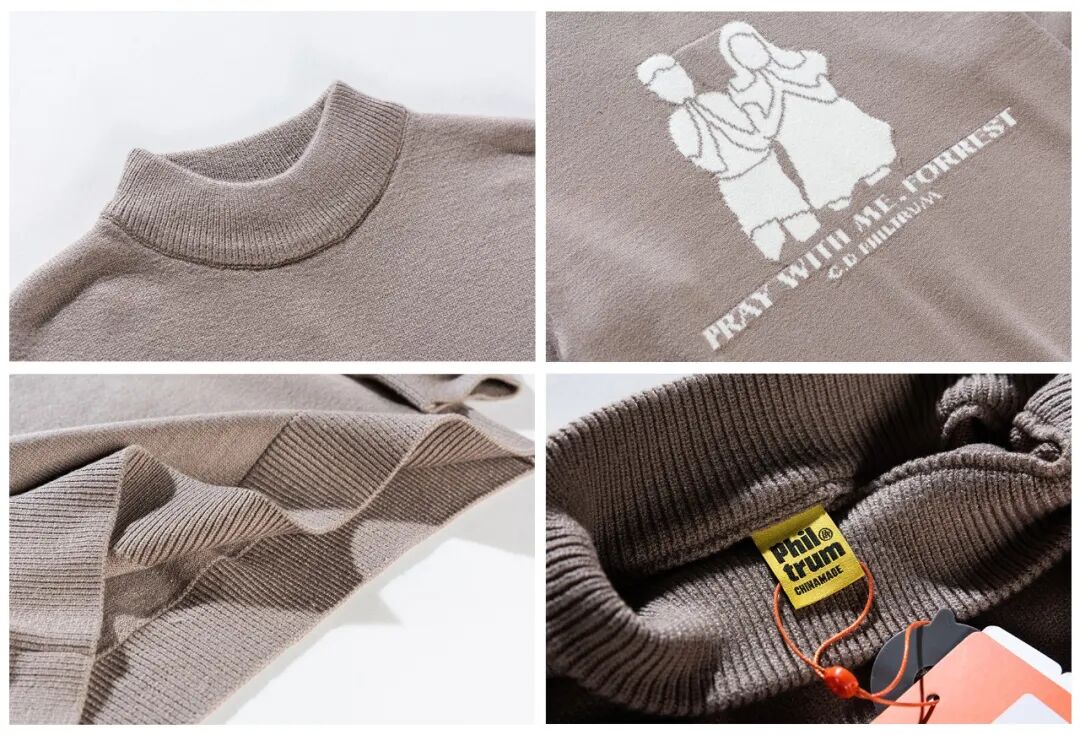 双人祈祷图案提花,微宽松版型,套头款式,小高领,无论是内搭还是外穿,都十分有看头!关键是这件针织面料特别柔顺,温和细腻不扎身!颜色偏灰调,百搭好驾驭!要选情侣装,或是冬日暖男装扮,穿这件!