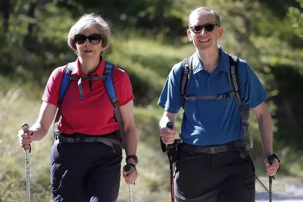 除了配饰之外,也可以用单品的颜色进行呼应。像来中国访问的梅姨,就和丈夫一同穿同款红蓝Polo衫,背着双肩包一起登山,满满的cp感脱屏而出。