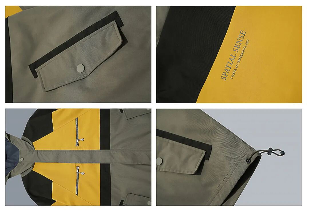 面料采用定染的高密度斜纹布料,透气耐磨。方块撞色设计