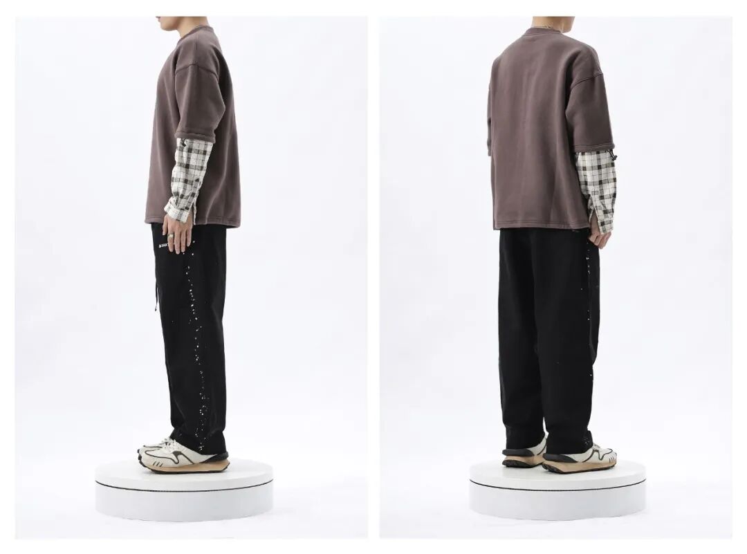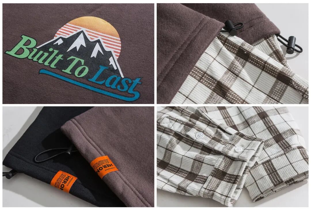 不挑人的圆领设计,微宽松版型,衣身厚实加绒面料,袖部拼接格纹,两种面料的视觉碰撞,加上胸部彩色印花点缀,简单保暖不失层次!领部螺纹处理,下摆设有松紧抽绳,上身自成一格,没有驾驭难度的单品,冲!