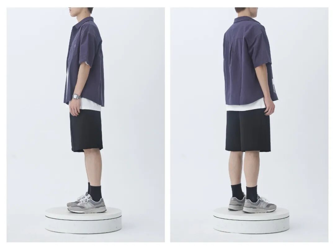 搭配解析:夏天满大街都是清一色的T恤,真的有些腻了!不如试试清爽帅气的短袖衬衫吧,单穿休闲干练,叠穿更有层次感,内长外短的穿法,轻松显高不费力。内搭白色印花T恤,干干净净很养眼,下半身搭配经典挺阔的黑色百慕大短裤,长度刚好到膝盖位置,夏天这样穿凉快又显腿长,非常值得小个子借鉴学习。整体配色舒服和谐,完全不挑肤色,平时懒得花心思搭配的懒男孩,建议你整套入手。![]()