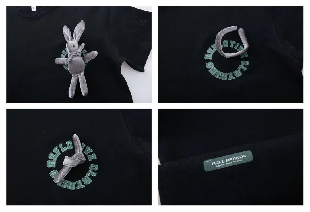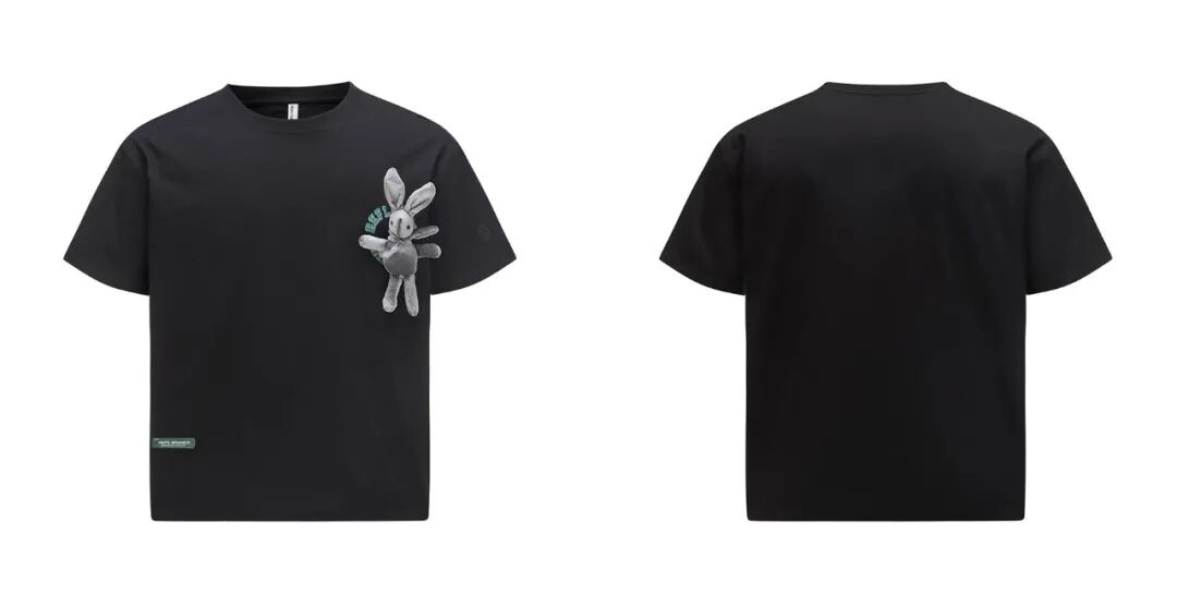 这是一款别具匠心的设计款T恤。以立体的长耳兔充绒玩偶,做了一个可拆卸的交互设计。拆下之后,配合周围的转热印花秒变时钟形象,小小心机趣味十足!宽松版型舒适,适合各种不同身形穿着。袖口有精心缝制的重工玫瑰刺绣,低调却不失细节。精致浪漫男孩买它就对了!