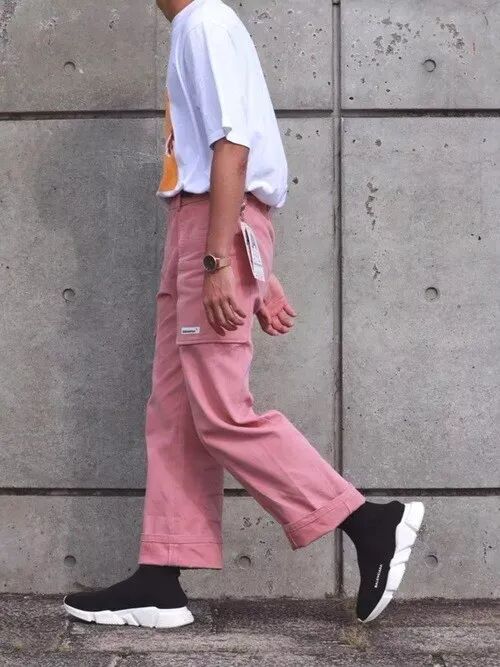 搭配解析:上身一件粉红色印花潮T,搭配一条黑色LOGO印花短卫裤,再上脚一双粉红色Air Force 1加强整体。