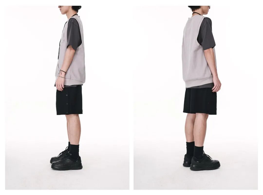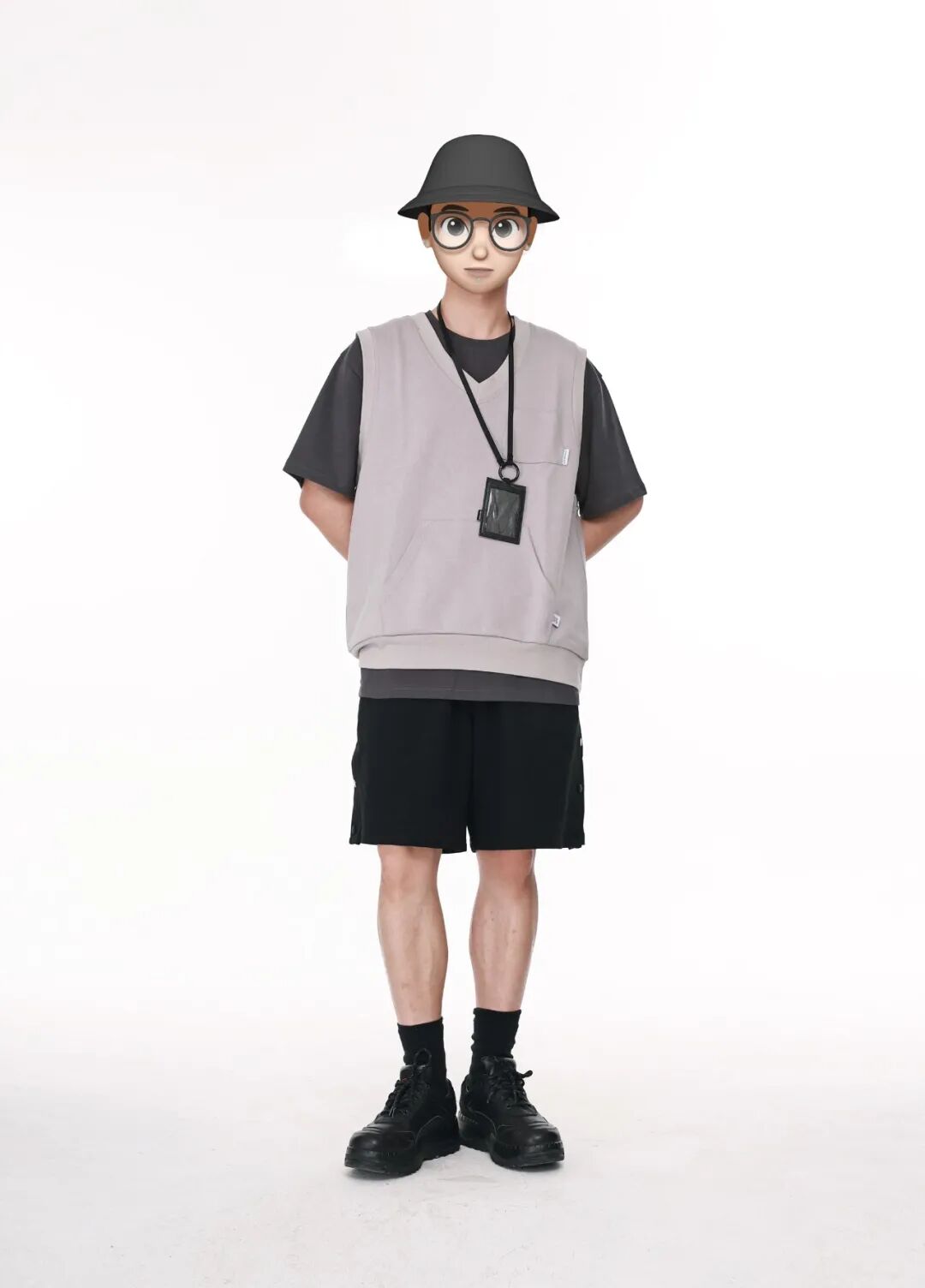 搭配解析:一套对白皮非常友好的复古穿搭!一件黑灰色圆领短T打底,与外搭的无袖背心形成邻近色的深浅对比,做出比较协调的层次感,再挂一个炭黑色证件包增加细节,下身搭配一条黑色排扣短裤营造舒适感和清凉感,黑色长袜做出堆叠感修饰脚踝,再上脚一对黑色皮鞋压稳重心。