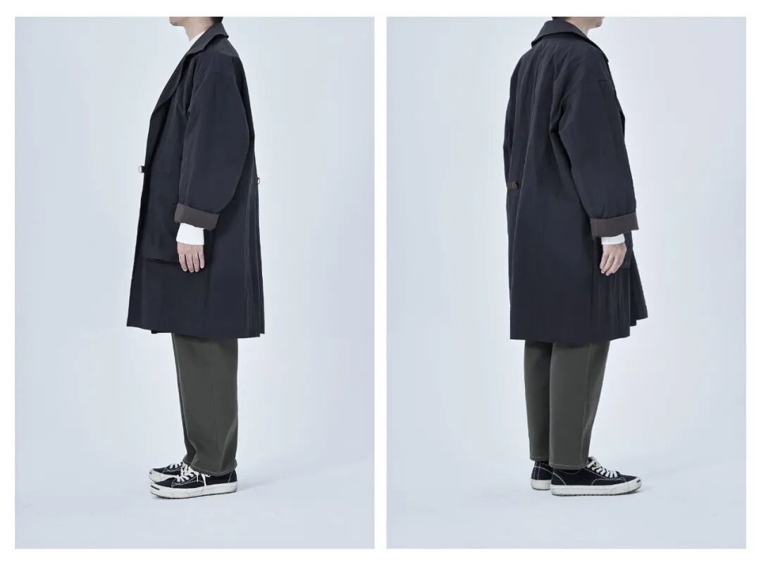 有细节的中长款外套,尽量和内搭颜色区分开来,在日系的穿搭中,军绿、藏蓝、卡其等颜色就算任意叠加、随意搭配,也基本不会出错,可以多尝试。
