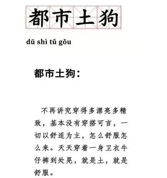 首先有一说一,解释里说卫衣和牛仔裤土的观点,格局多少有点小了。不过话又说回来,这样的“都市土狗”,很多人想当还当不上!因为他们真实身份,大多是有女朋友的人。不信?你把上面释义再品一品。(狗头保命)
