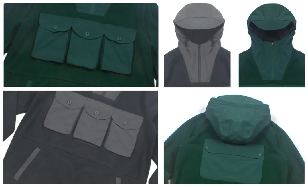 衣服的下摆设置了弹力抽绳,除了可以通过收紧来抗风保暖,还可以根据穿搭选择松紧度来提升整体的造型感。