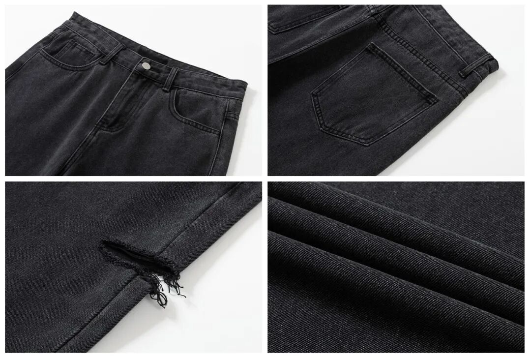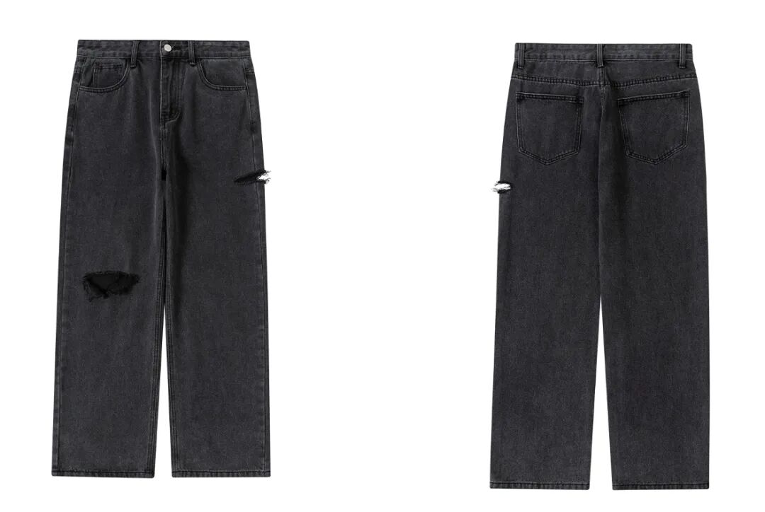 直筒破洞牛仔