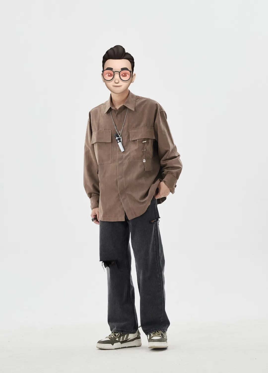 破洞裤、衬衫、日常休闲