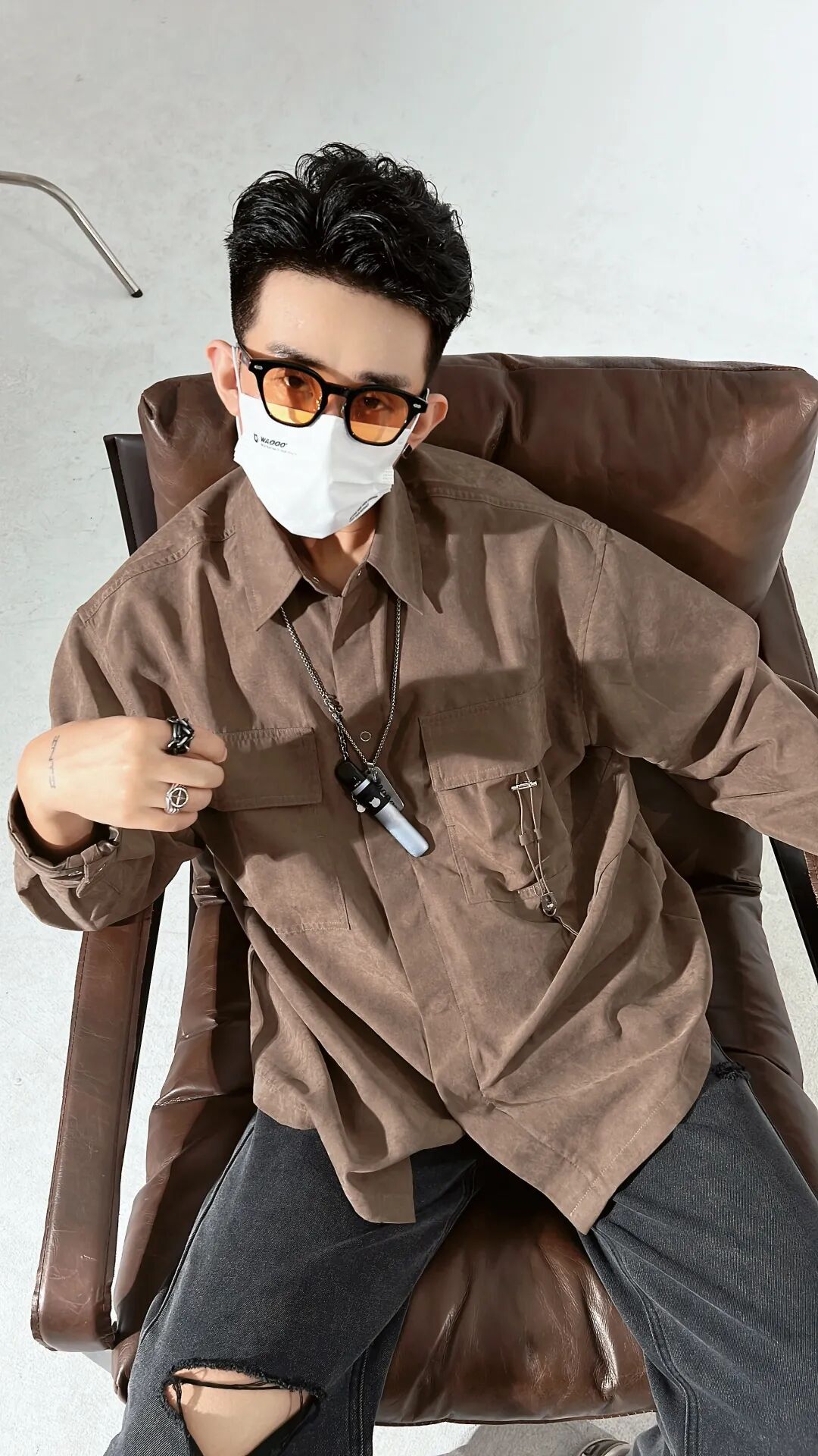 破洞牛仔有个非常好用的穿搭公式,就是上装搭配衬衫,再踩一双自带白色的板鞋提亮整体!方法很简单,谁用谁知道~