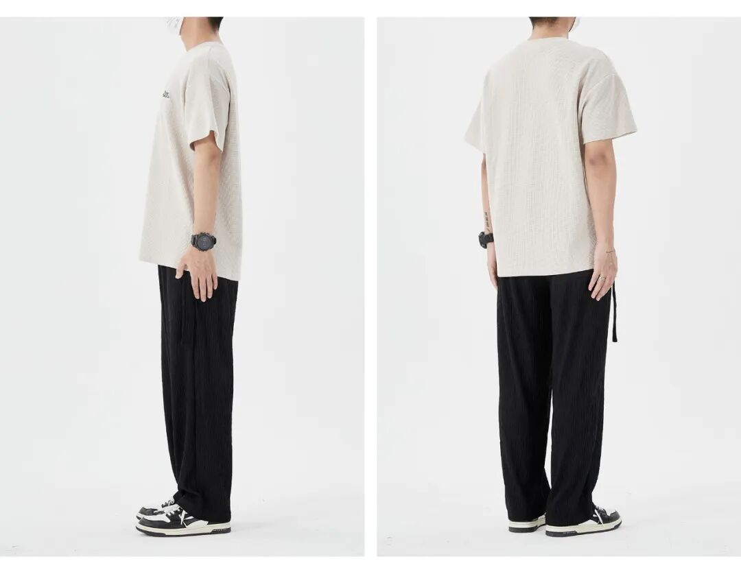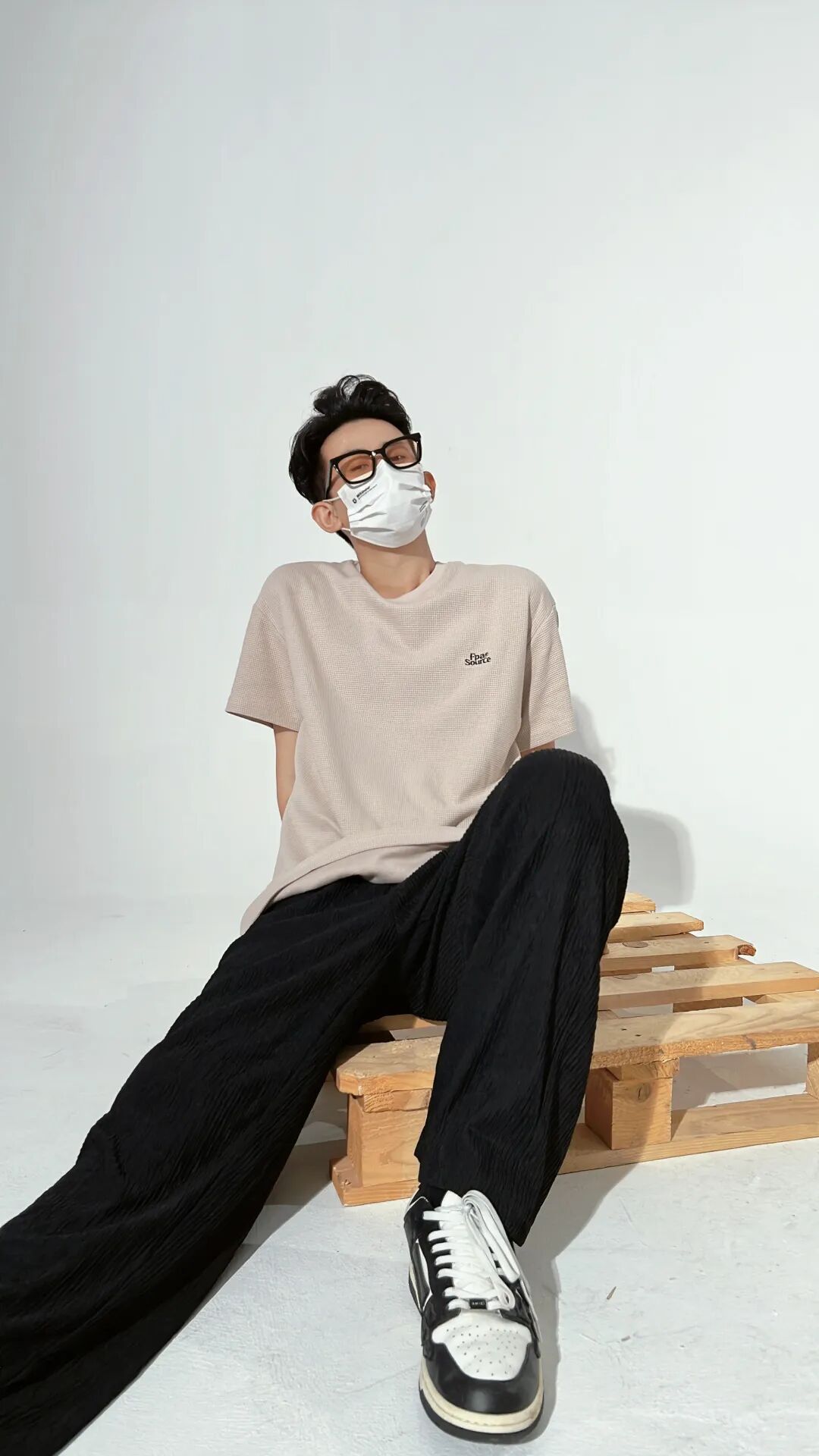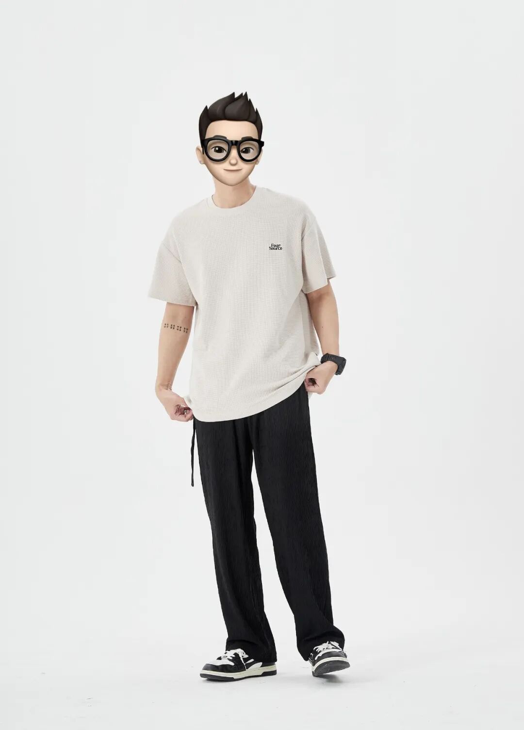 上身一件超透气的木灰色华夫格刺绣T恤,下身搭配一条碳黑色百褶垂感休闲裤,最后脚踩一双AMIRI Skel-Top骨头鞋凸显活力气息,直接高级感侧漏!