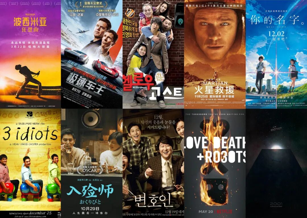 波西米亚狂想曲、极速车王、开心家族、火星救援、你的名字、三傻大闹宝莱坞、入殓师、辩护人、最近特火的爱死机三部曲,还有与我今天搭配相呼应的现代科幻片开山之作——2001时空漫游。