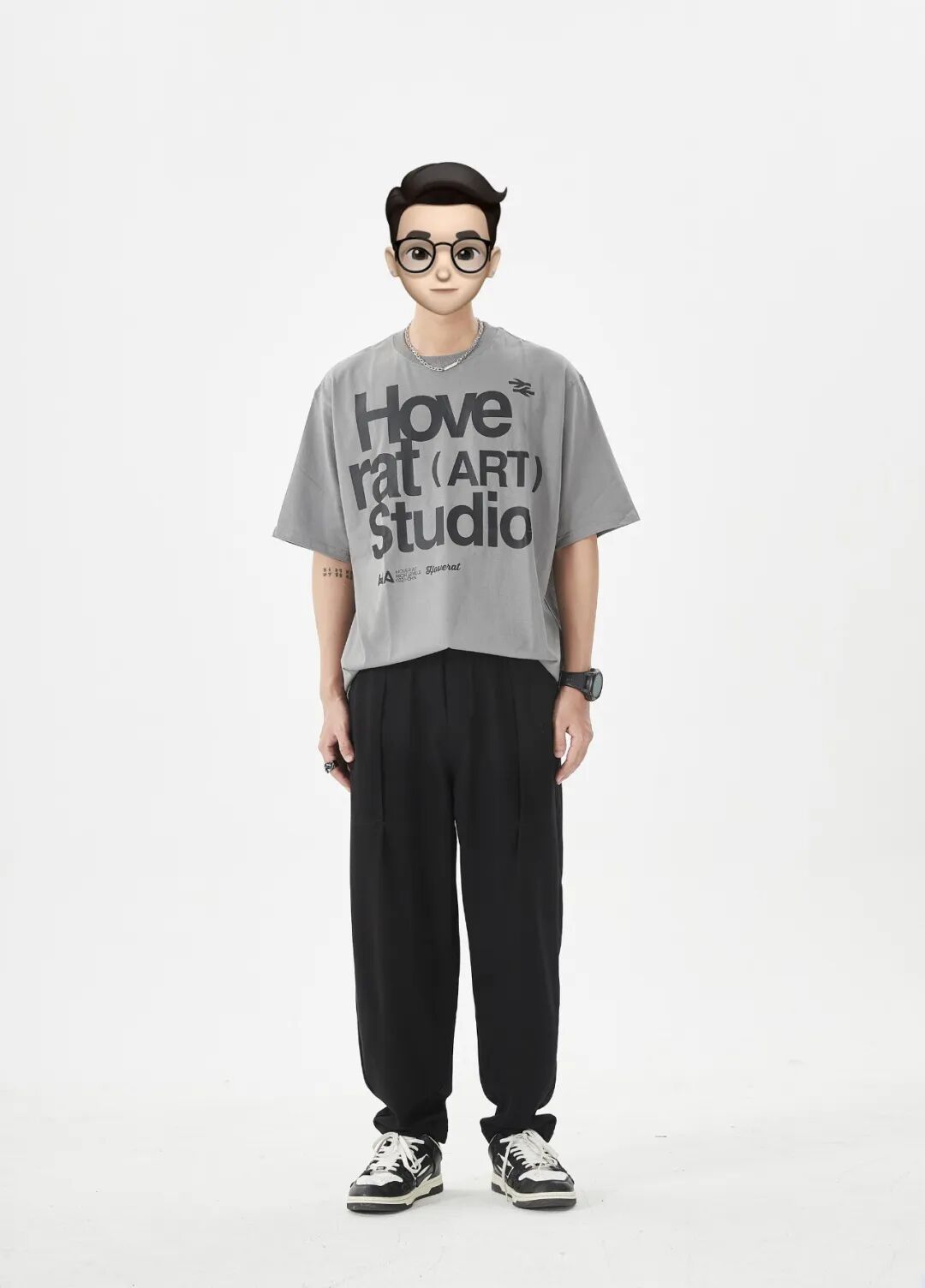 上身一件灰色复古字母印花短T,搭配黑色日系休闲垂感收脚裤,最后上脚一双AMIRI Skel-Top骨头鞋凸显活力气息!