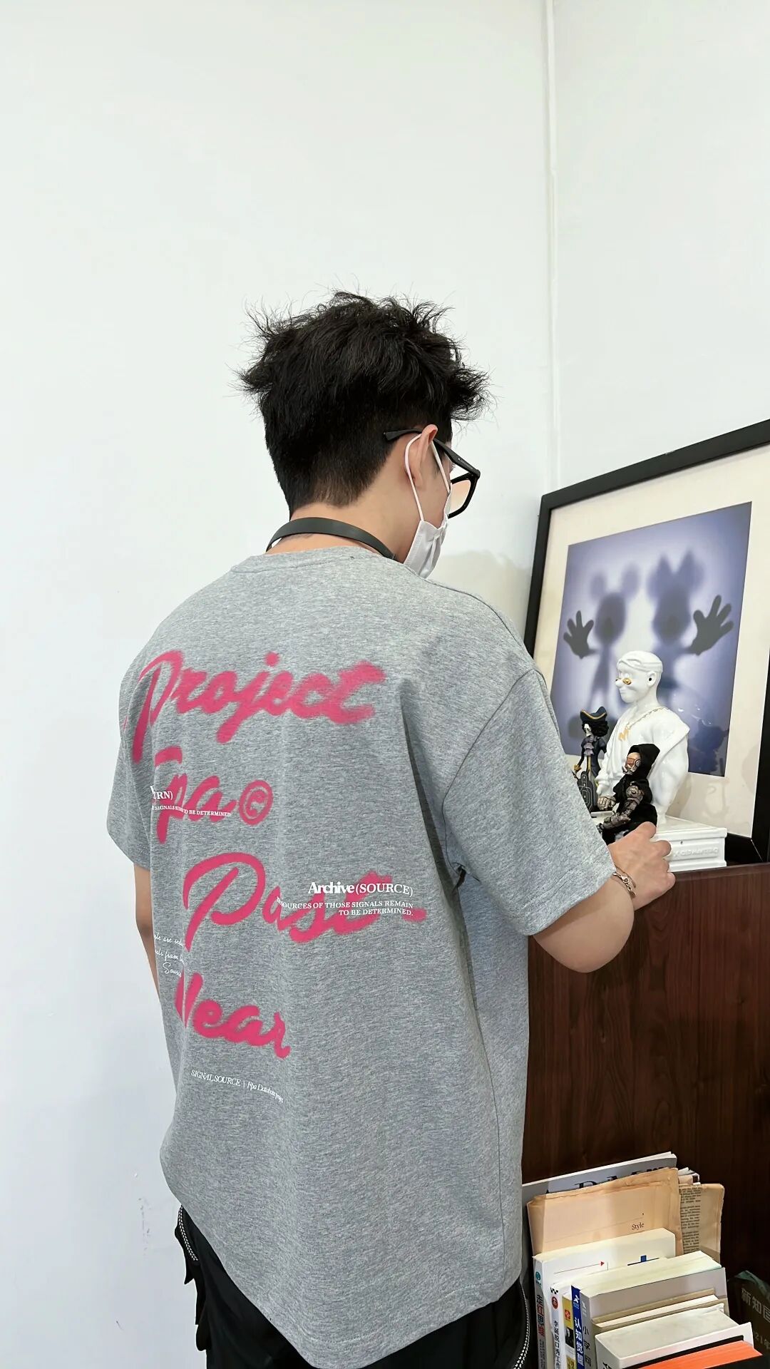 成衣选用265G全棉针织面料,柔软舒适、透气性好!印花是不对称的手写字体,设计上做了一个模糊虚幻的视觉效果,配色上采用撞色的形式,让整体更加吸睛,也更有趣味感。领口采用通肩压条工艺,不仅稳定性更好,舒适性也一流!
