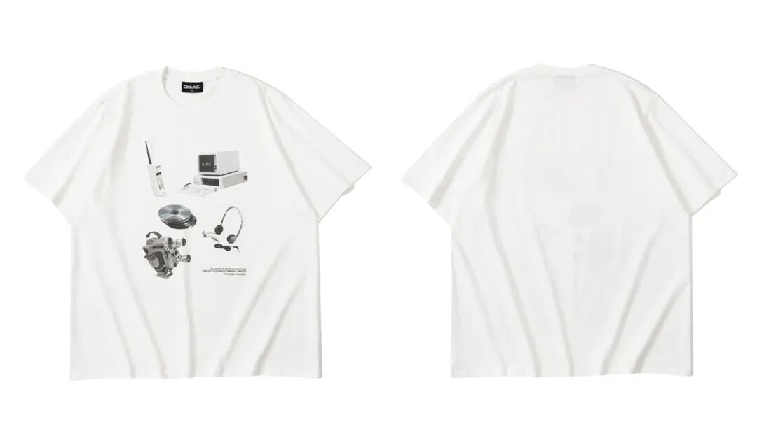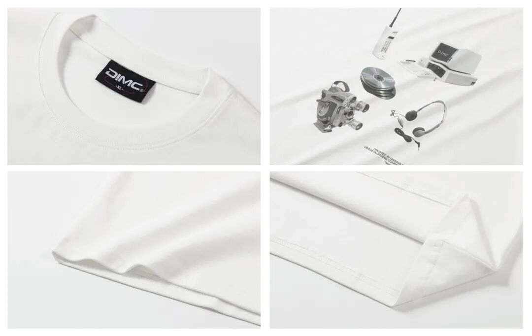 首先得夸一下这件衣服的走线,线迹真的非常平整细密,让原本260g的重磅纯棉面料更加舒适了,上身可以说是挺阔又好穿!然后重点来了——印花,印花的图案是一个复古小物件的白底图合集,排版很nice,看上去非常精致有味道,而且成色很棒,带有浓浓的复古滤镜,加上采用的是进口数码直喷机喷印,掉色的问题完全不用担心!喜欢这种趣味印花T恤的,可以入手一件试试~