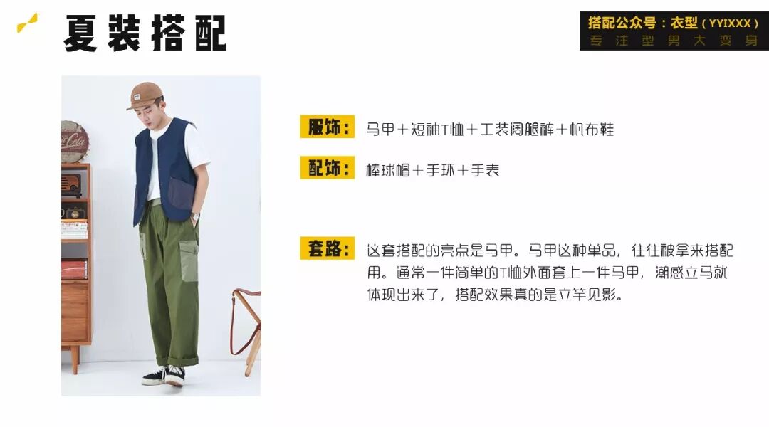 马甲也是凹造型的利器,常见大多是潮牌和工装马甲,这里就不过多介绍了,夏天可以准备一款用来搭配!