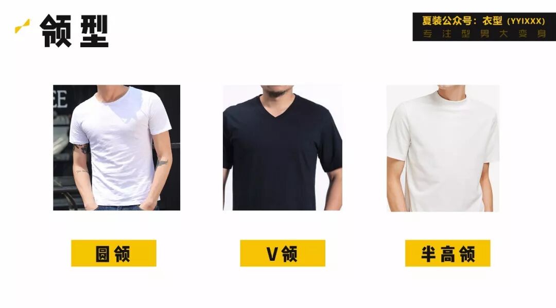 圆领是最基本的领型,不过也有大小圆领的区别,脖子短的朋友可以选择V领,半高领更适合脖子修长的小伙伴哟。