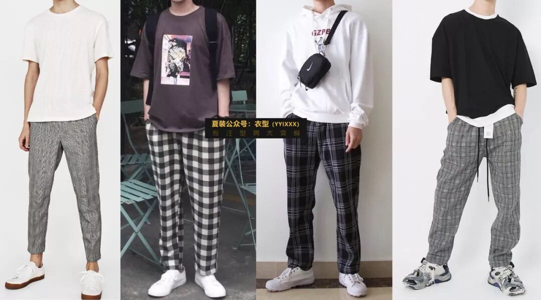 裤子的宽度最好和自己身体的宽度一致,太宽显矮显胖,太窄显瘦显娘。然后再给大家安利两款近几年比较流行的裤子:拖地裤和格子裤。