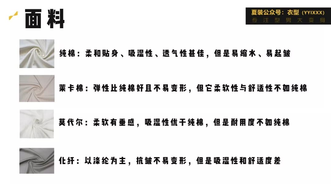 面料是衣服的灵魂,很多人买衣服不怎么看面料,其实会非常吃亏,不同面料有不同的特性,所以还是建议大家了解下,常见的T恤面料一般分为以下几种: