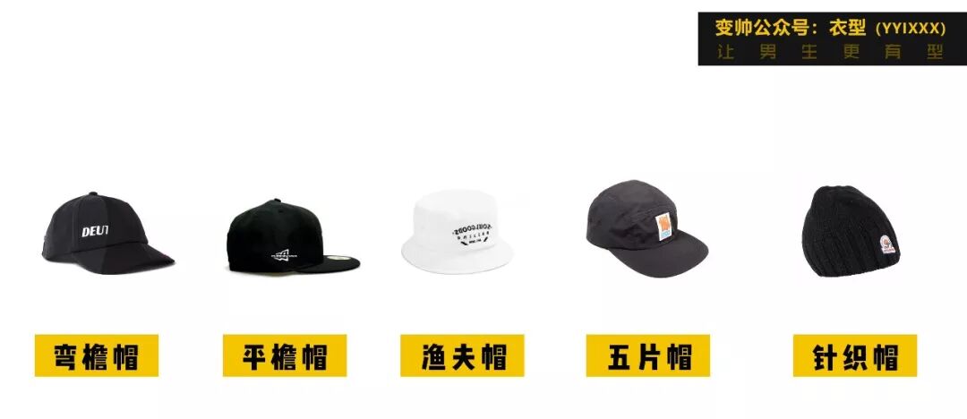弯檐帽、平檐帽和五片帽,这三种帽型大概是hip-hiop中出现最多的帽款。