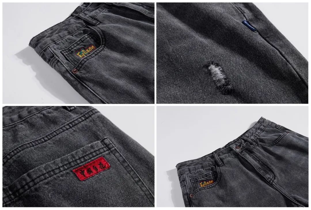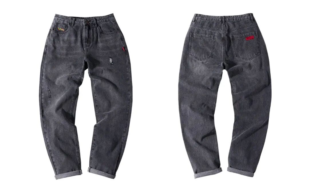 微宽松版型,水洗牛仔,质感相对柔软,裤腿微收脚,