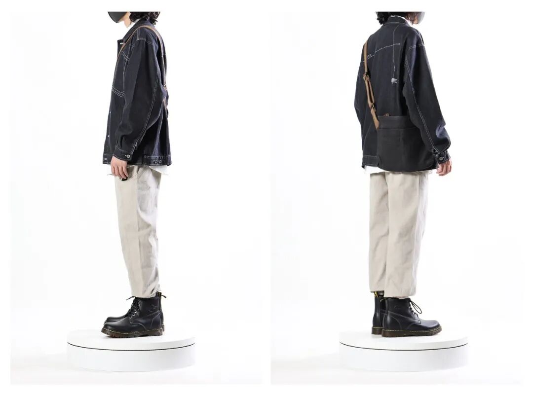 搭配解析:干净利落的搭配,无论约会还是独自出门,都非常吸睛!配色上身选择了分明的黑白色打造层次感,下身巧妙的利用卡其色的视觉暖调,打造秋季暖男穿搭!这套不挑肤色,学生党可以搭配板鞋打造少年感,NICE!相对于传统牛仔夹克,这件版型选用不挑人的宽松版型,配合缉明线工艺,设计走线,落落大方又不失个性的独特视觉,为穿着者更添一份品味质感!它采用全棉烟熏牛仔,上身质感经典,胸部倒转不规则口袋与整体不对称细节,隐形插袋,这些细节都增加了单品的可识别度。店铺新客首单立减30!不想跟人撞衫?穿它!
