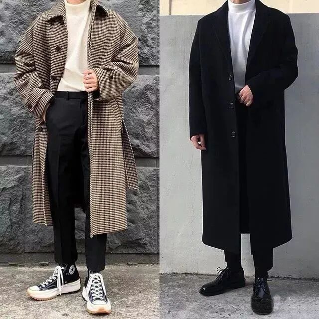 不喜欢佩戴首饰的小伙伴,还可以通过调节穿搭颜色来提高视觉重心,上浅下深的颜色穿搭转移搭配重心。或者在叠穿时,内搭高领、或上下同色延伸视觉身长,达到显高目的。(但注意长款风衣不能过膝。)