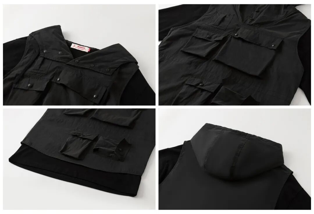 在颜色搭配上使用一点小心机,也能让我们的身材看起来更修长。秋冬最常见的方法就是,内搭的衣服和裤子选择同色弱化腰线,外搭一件异色的外套就ok!也可换亮色内搭来打造视觉腰线,使身体比例更修长。要是不想搭配异色外套,还可以通过凸显皮带扣这样的细节处理达到分割身腿比例效果。当然下半身搭配颜色也是需要注意的,袜子、裤子、鞋子选择相同颜色,可以让视觉腿长得到延伸,凸显长腿优势。当然小个子搭配最简单粗暴的方法就是物理增高,选择一双厚底鞋,或者偷偷塞个增高鞋垫,让你直接高几cm,再配合上面的穿搭技巧,腿长2m不是梦!!搭配解析:这套是Waooo套装,修身又显个,小个子强烈推荐!上身与裤子形成通体黑视觉效果,浅色马褂突出视觉腰线,延长视觉腿长!配合帽子、运动鞋达到物理增高效果,小个子穿着也超有范!它不仅是一件套头风衣,还是假两件的设计!首先针织加梭织的面料碰撞,穿着体验更加丰富!其次正面多个立体口袋有序排列,加上连帽设计,按扣辅助,上身户外运动属性,告别暗色沉闷印象!而且这件假两件内里拼接了一整件柔软长T,单穿就十分亲肤!加上下摆层次处理,简单搭配黑色长裤就能凹出帅气造型!不仅是小个子男生还是瘦瘦男生的福音!还有今天提前把双十一过了,找客服,报"型爷"名字立减38元!再送价值28元WAOOO真空包装概念双筒袜一双!仅限今天!![]()