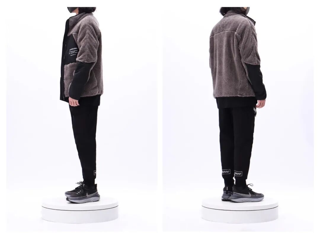 配色,更易于驾驭!双面北极绒,柔软保暖,袖子还有反光条设计,晚上出门凹造型也不用担心