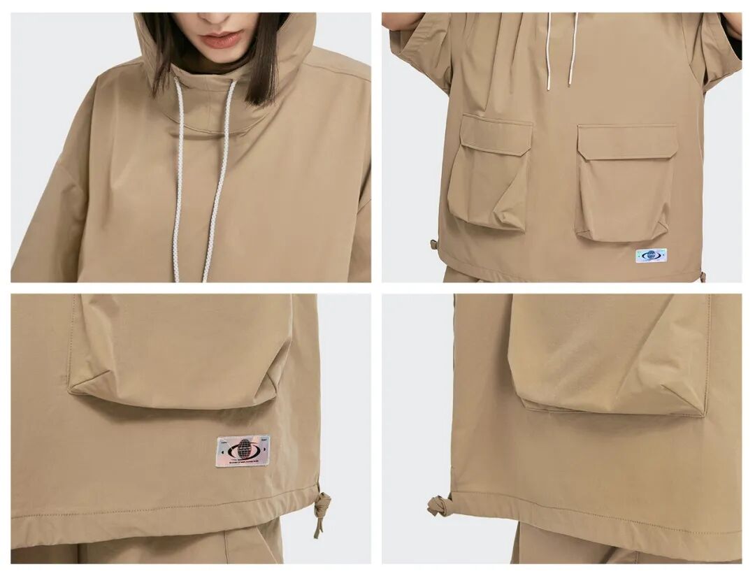 搭配解析:美式运动男孩必不可少的一套搭配,卡其色连帽搭上工装短裤,又飒又清爽,迎面而来的少年感与夏天特别搭,滑板男孩再适合不过!!!上衣短裤都做了大口袋和飘带设计,不单美观还实用,还多了几分随性。短裤版型挺阔显瘦,两侧抽绳可调节松紧,整体给人感觉就是一个酷酷的美式高街男孩,喜欢的型男们赶紧冲!![]()