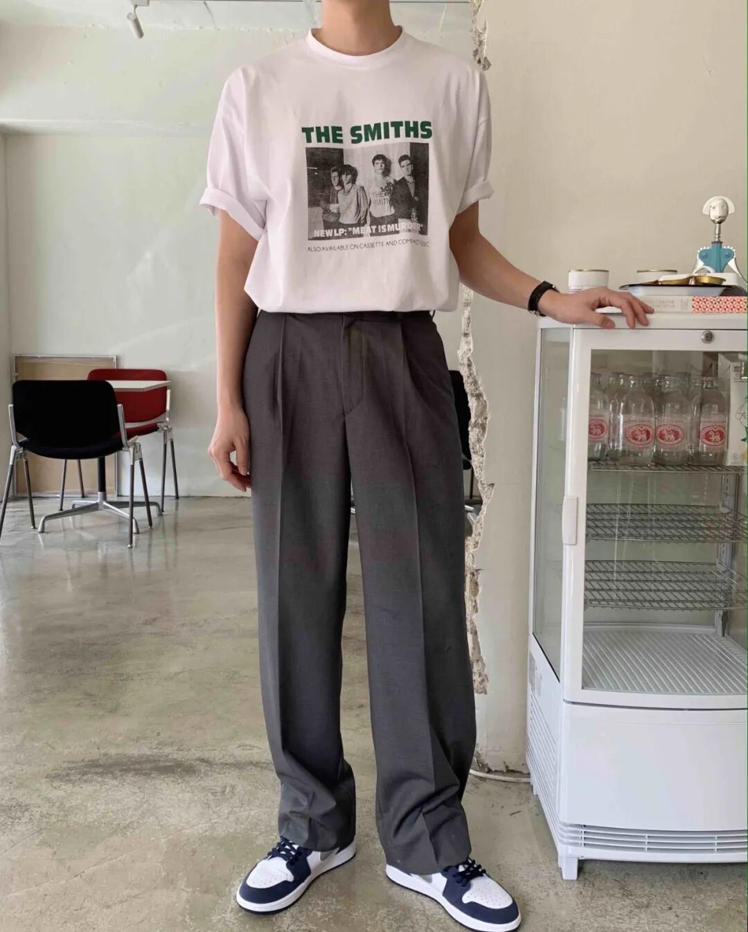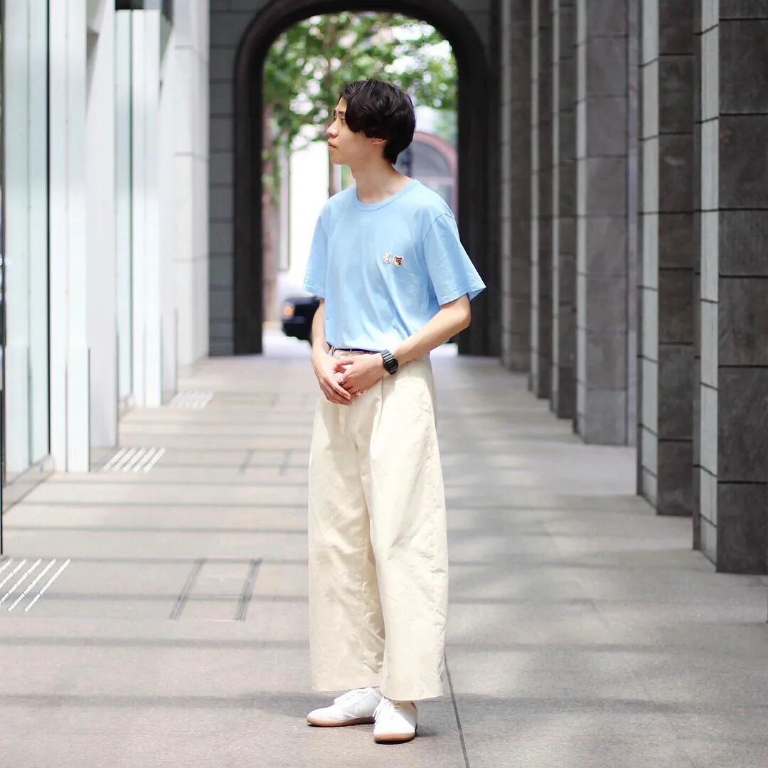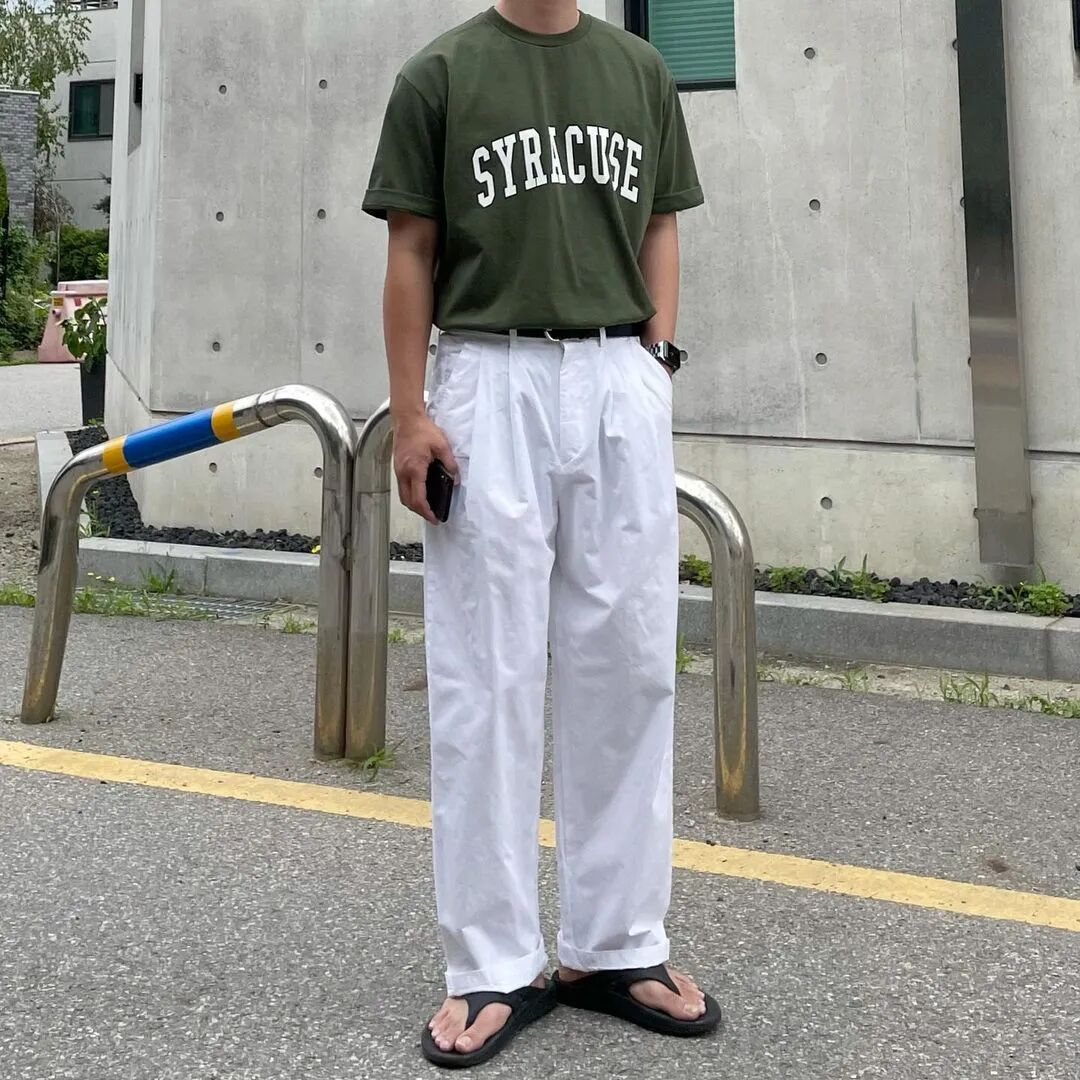 搭配里至少要有一件运动风单品,比如运动鞋、卫裤、棒球帽。裤子可以选择利落有型的西装裤,搭配自带腔调的印花T,偶像剧男主就是你。