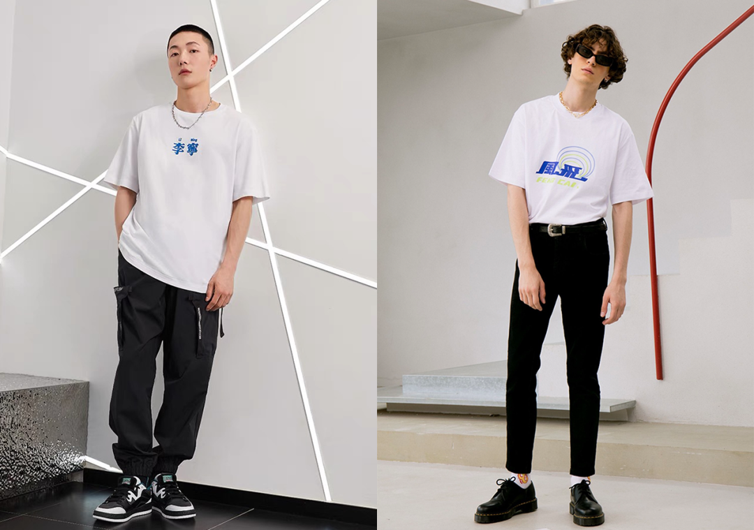 最常见的国潮风T恤,通常会带有质感醒目的中文印花。简简单单的白T,有了神采奕奕的中文加持,立马就变得与众不同。