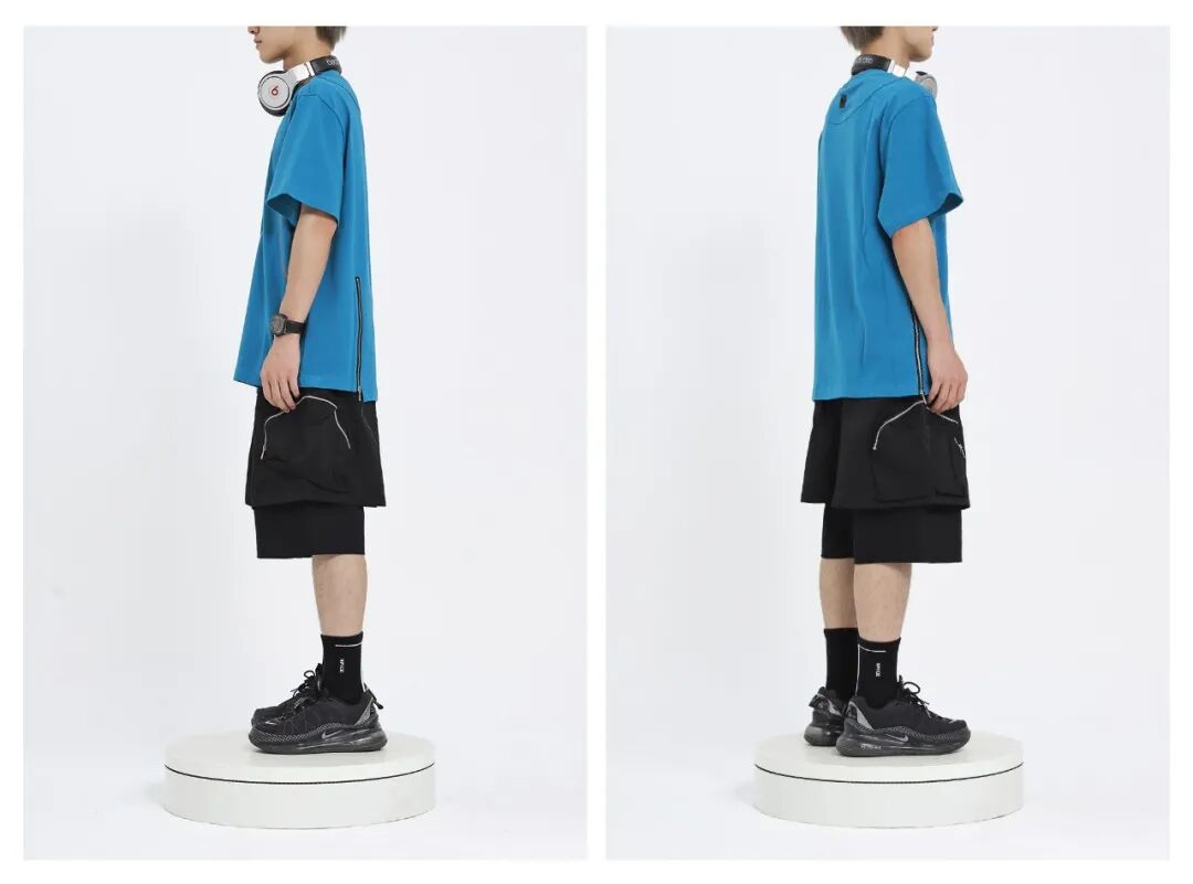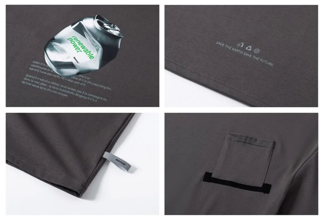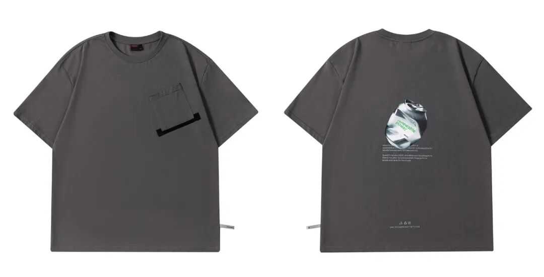 一件精心设计的t恤。灵感来自环保创意题材,聚焦全球变暖问题。通过用踩扁易拉罐的图案元素,呼吁大家保护环境,科技感、趣味性满满~斜设计的口袋下面贴了凸显层次感的织带,细节十足吸睛~谁穿谁就是街上最靓的仔!