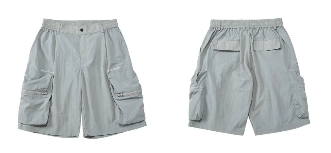 这条裤子布面做了褶皱肌理,松紧腰满足更弹性的穿着需求。前幅的收褶加大腿围的空间,裤腿两边的立体袋区别于常见的普通口袋做收褶改良,立体袋的上方两端向内收褶所形成的袋型极具设计感,属于你不可错过的夏日百搭神器!(报“型爷”立减20!)