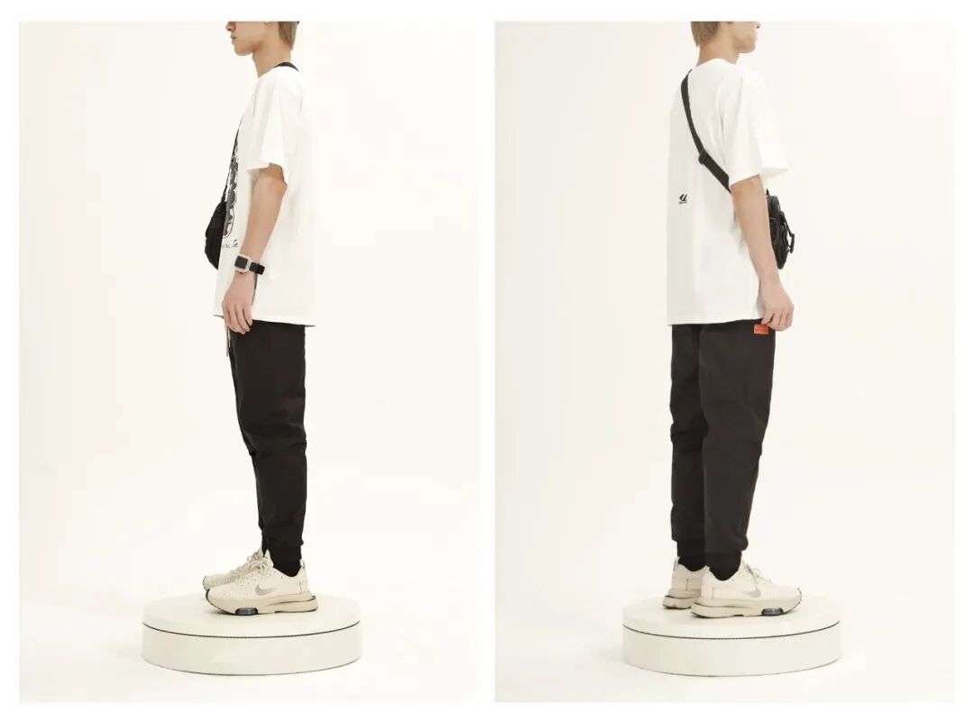 搭配解析:简约不简单的一套搭配。浅色上衣与黑色束脚裤的搭配让人看起来干净利落,仿佛夏日里低调的清爽帅哥~点缀一顶帽子遮阳又美观,修饰出精致小脸。斜挎包有型又显瘦,拉出完美身材比例。整体帅气又吸睛,高街必备~