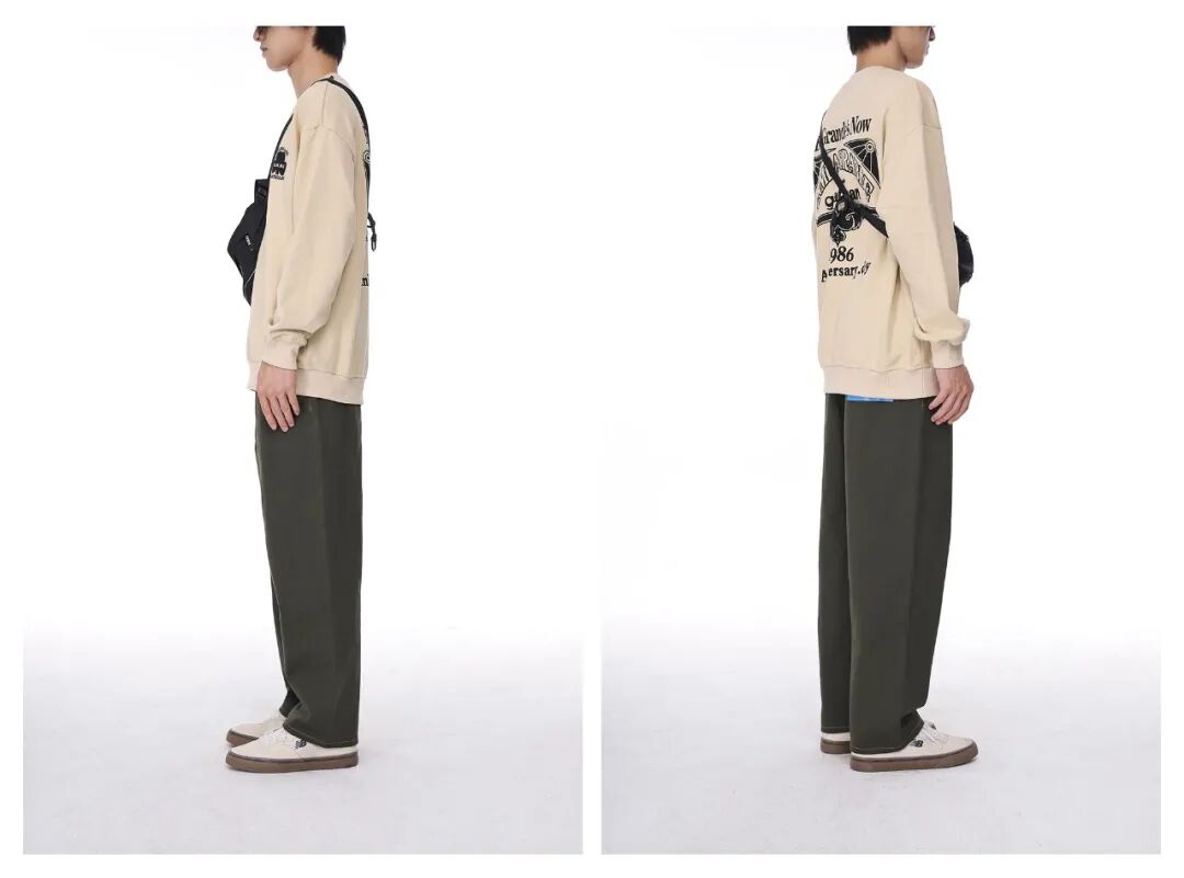 衣服采用定制面料,做了免烫处理,有轻微垂坠感,上身舒适感爆棚。宽松版型,常规厚薄,可以说非常适合秋天格外分明的城市了。卫衣有卡其、深灰和蓝灰三种颜色,黑皮推荐偏藏青色的蓝灰色,自然肤色随便玩!