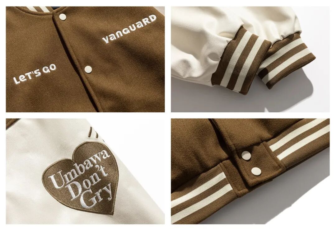 版型很棒的棒球夹克!棒球领领口设计,走线工整,舒适性一流;袖口采用螺纹松紧设计,贴合手腕之余还能锁温;图案均采用刺绣工艺,既简约又大方。棒球夹克作为人手一件的早秋新宠,你没有就说不过去了吧!
