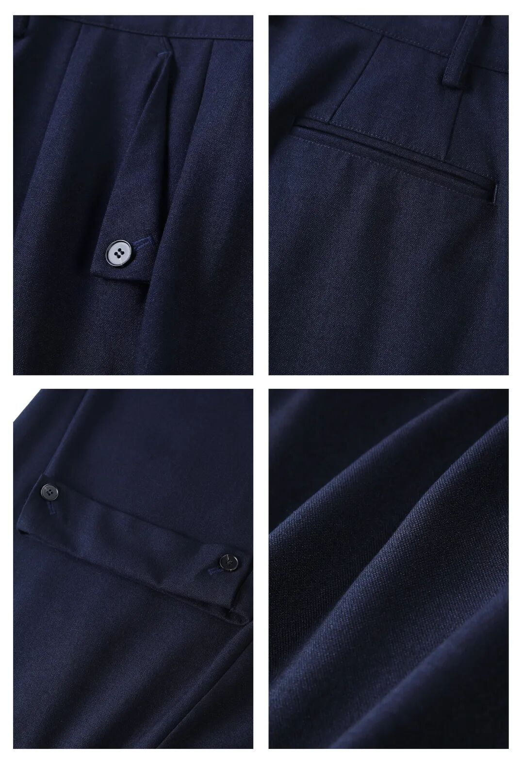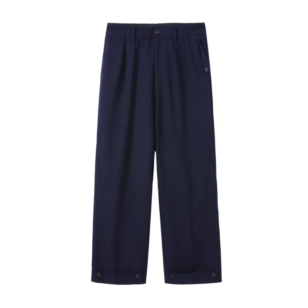 微宽松直筒裤型,可以瞬间掩盖腿形缺陷,巨显腿直。20%棉+80%涤的面料配方,在舒适与垂感之间找到了一个平衡点,上身柔软爽滑垂坠感十足!前后双口袋加持,装个手机,藏点私房钱都绰绰有余。PS:刚拿到手的裤子,口袋需要自己用小剪刀剪开。裤脚翻盖纽扣设计,两种形态随意转换,想显腿长就扣上,想将垂感进行到底就解开,洒脱随性。双色可选,之前喊我搭白色、藏青色裤子的朋友千万别错过了!帅气舒服的一批!