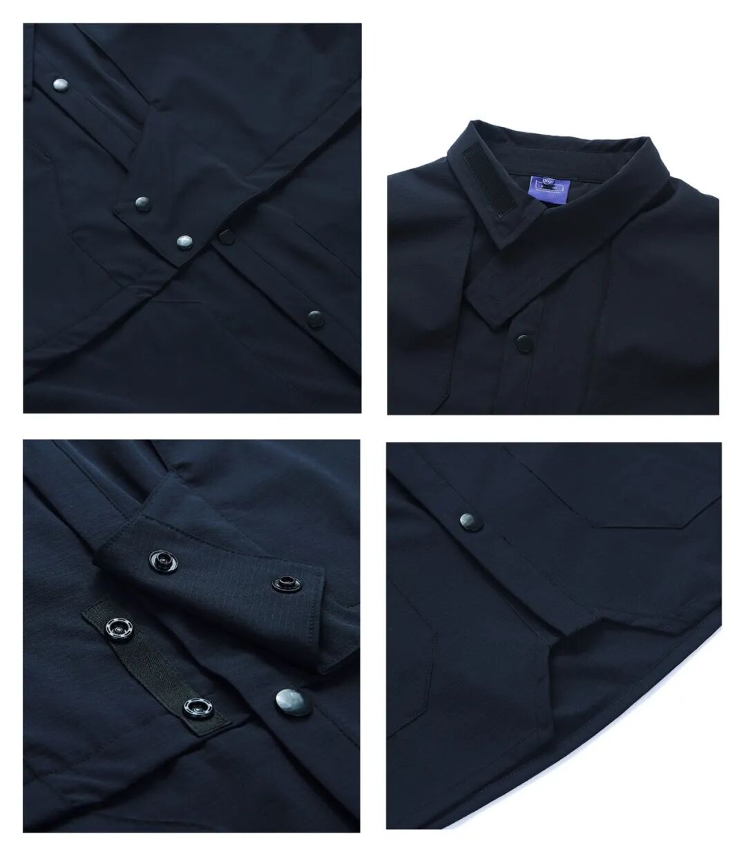 面料为藏青色小格子的机能面料,既防泼水也透气十足。衣服设有5个口袋,大大满足了功能性需求;不对称的裁片拼接和衣领设计,自带层次感。衣服的袖子比较长,入手之前一定要清楚自己的尺寸喔!